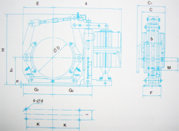 型號Type | 制動力矩 Torque (N.m) | 退距 Clearance | A | b | C | C1 | D | d | E | F | G1 | G2 | H | h1 | i | k | M | |||||